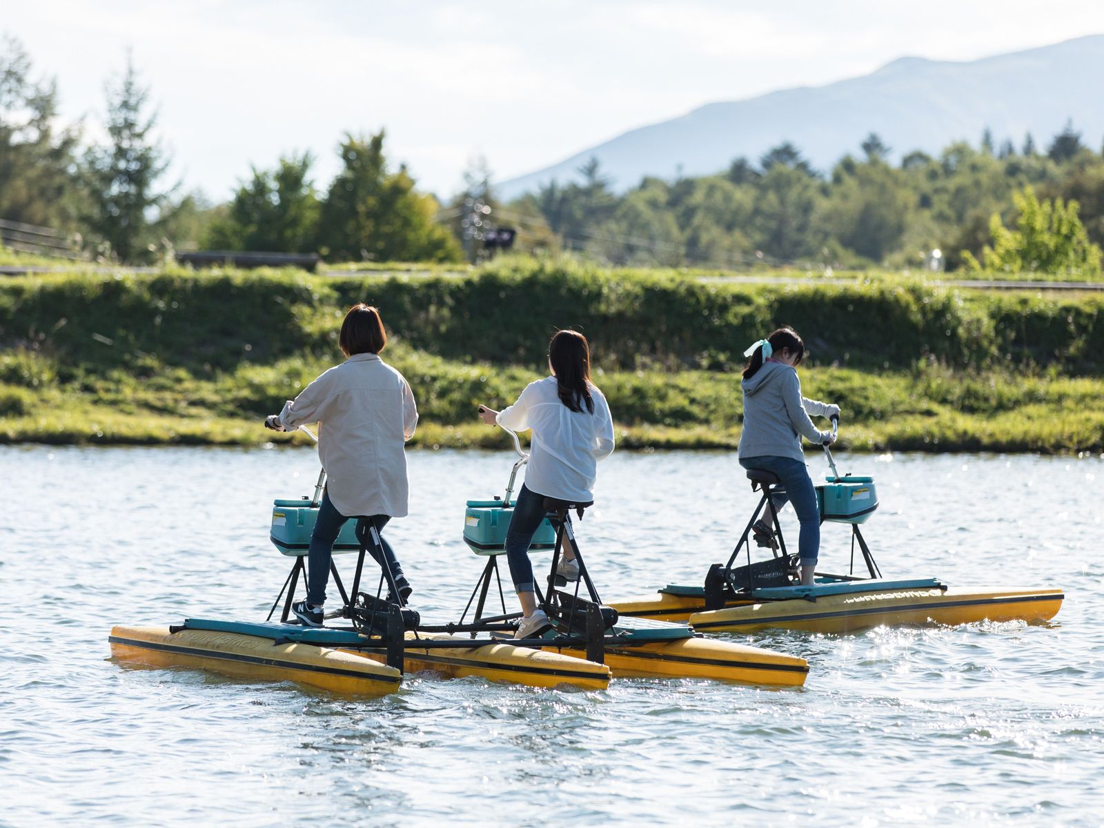 徒歩5分。一周30分。湖面に映る蓼科山を見られる時も。ボートやカヌーあり。